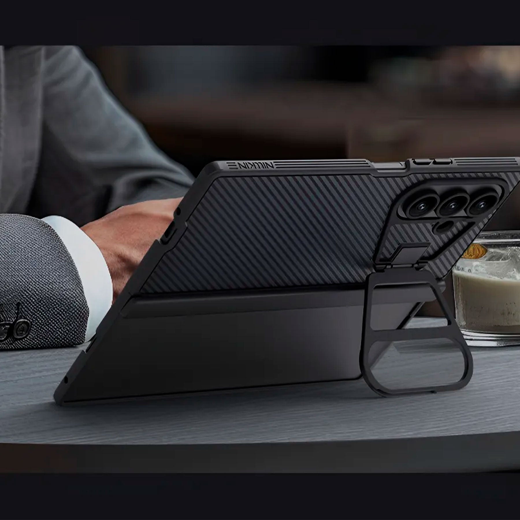 La funcionalidad del estuche se complementa con su ligereza, facilitando su uso diario sin añadir volumen innecesario. Si buscas una solución que no solo proteja, sino que también complemente la elegancia de tu Samsung Galaxy Z Fold7, el Estuche Nillkin Camshiel es la elección ideal.