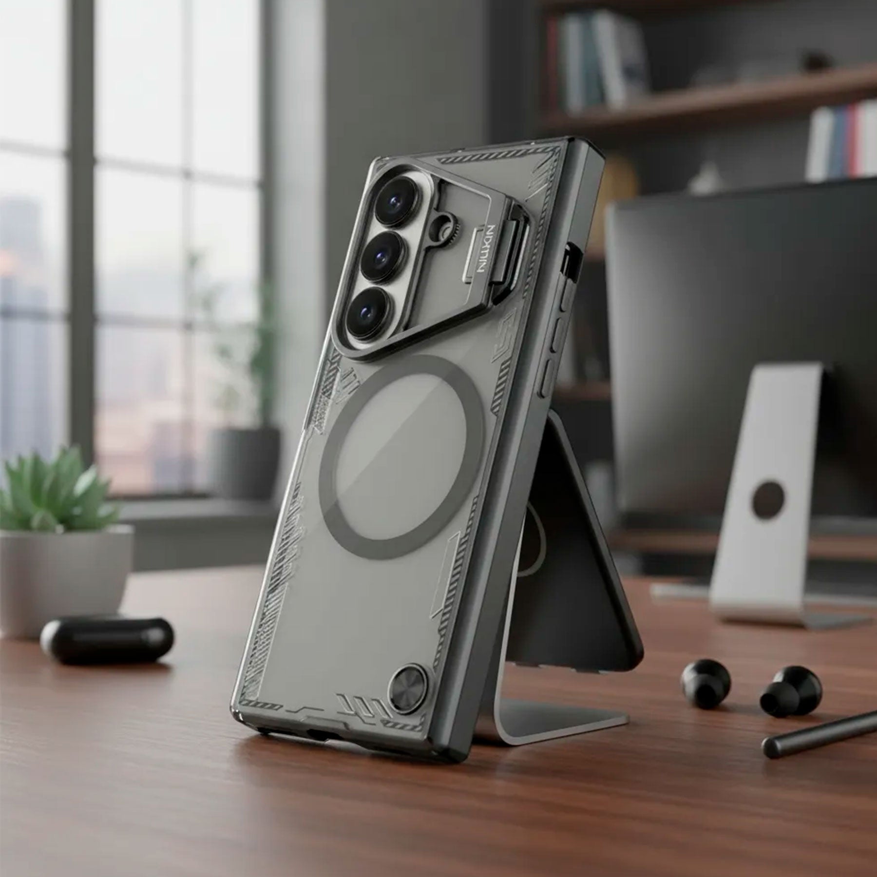 Innovador diseño de soporte de cubierta de lente, que equilibra la protección del lente y la funcionalidad de soporte del teléfono.La construcción de doble material TPU+PC